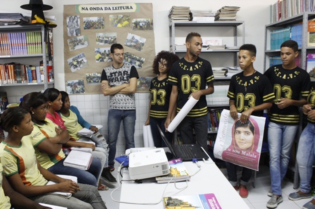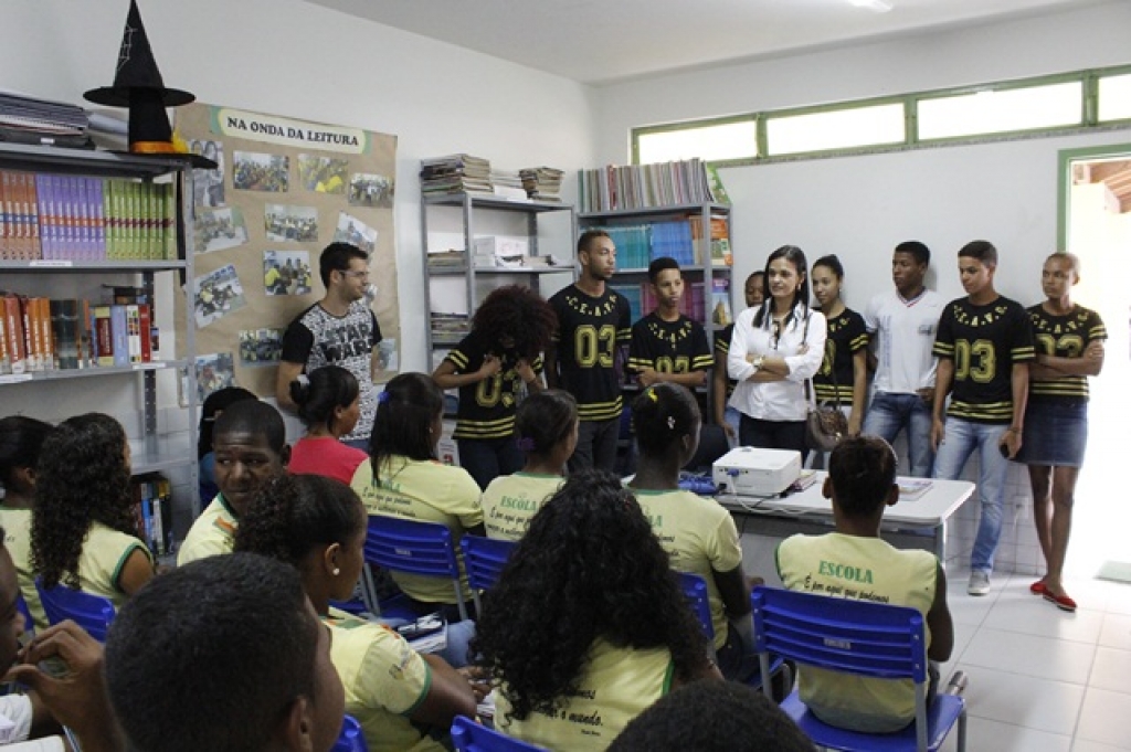 DIVULGAÇÃO DO PROJETO DE LEITURA FEITA PELOS ALUNOS DO COLÉGIO ESTADUAL ARTHUR VIEIRA NA ESCOLA MUNICIPAL MARIA RITA ALVES