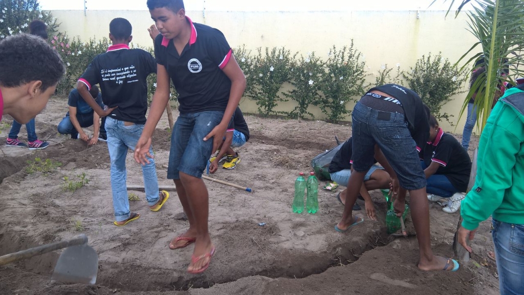 PROFESSORES DE MATEMÁTICA E GEOMETRIA DA ESCOLA MARIA RITA TRABALHANDO FORMAS GEOMÉTRICAS COM OS ALUNOS DO 9º ANO