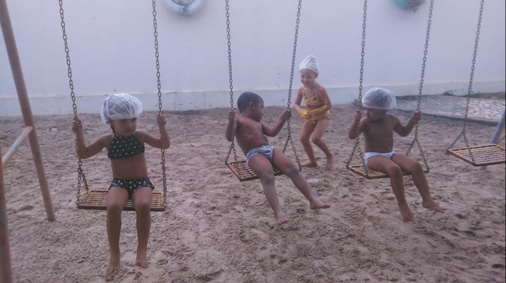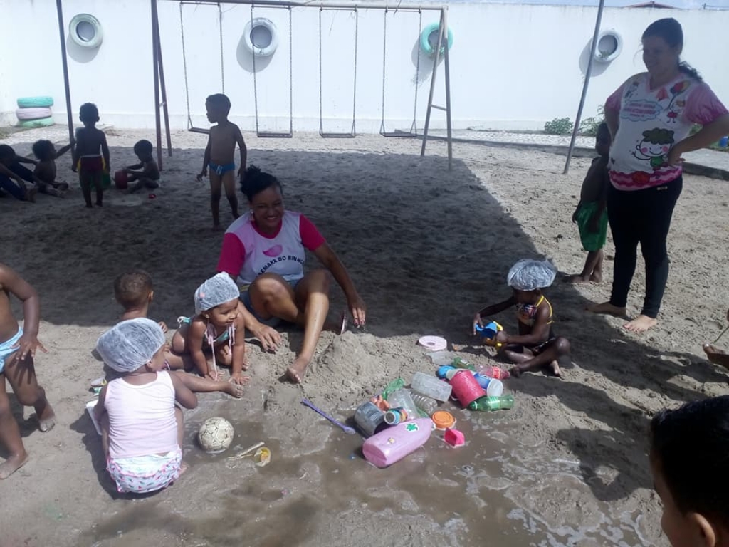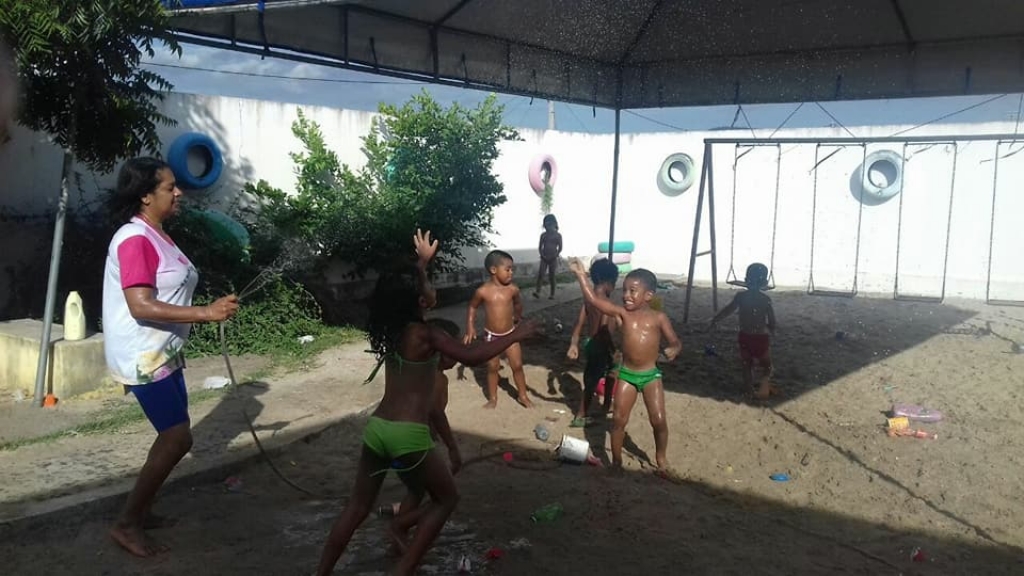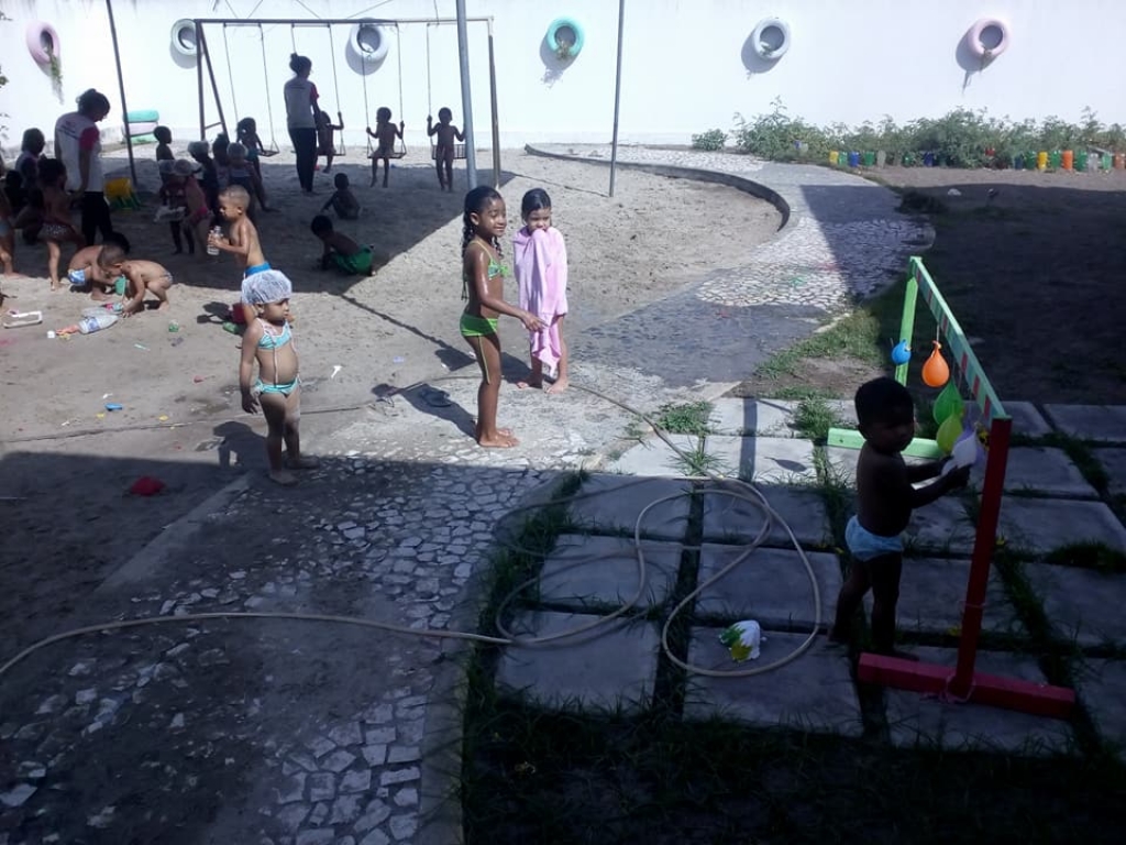 TERCEIRO DIA DA 4ª SEMANA DO BRINCAR NA CRECHE-ESCOLA MARIA VITÓRIA CORREIA COM BANHO DE PISCINA E DE MANGUEIRA