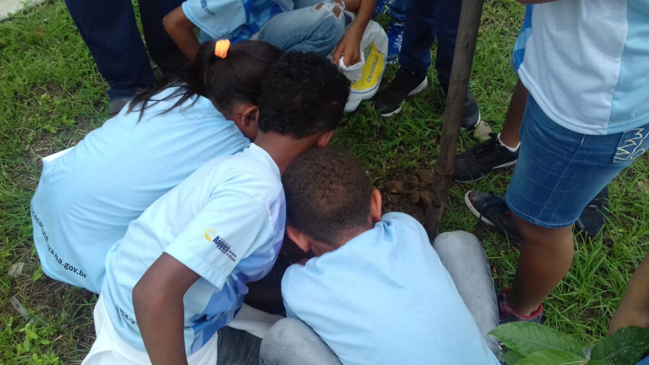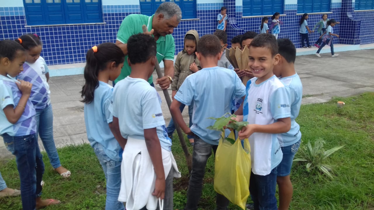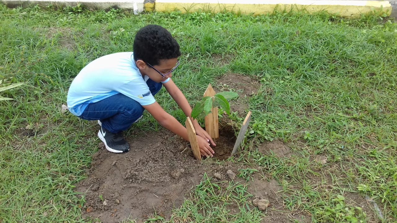 ESCOLA ÉRICO CELEBRANDO O DIA DO MEIO AMBIENTE, COM O PLANTIO DE DOIS PÉS DE OITI