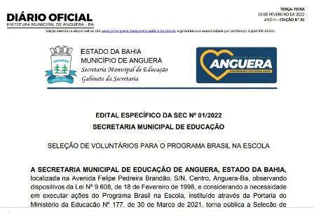 do Ano Letivo de 2022, nas escolas municipais de Anguera. O momento ficará
