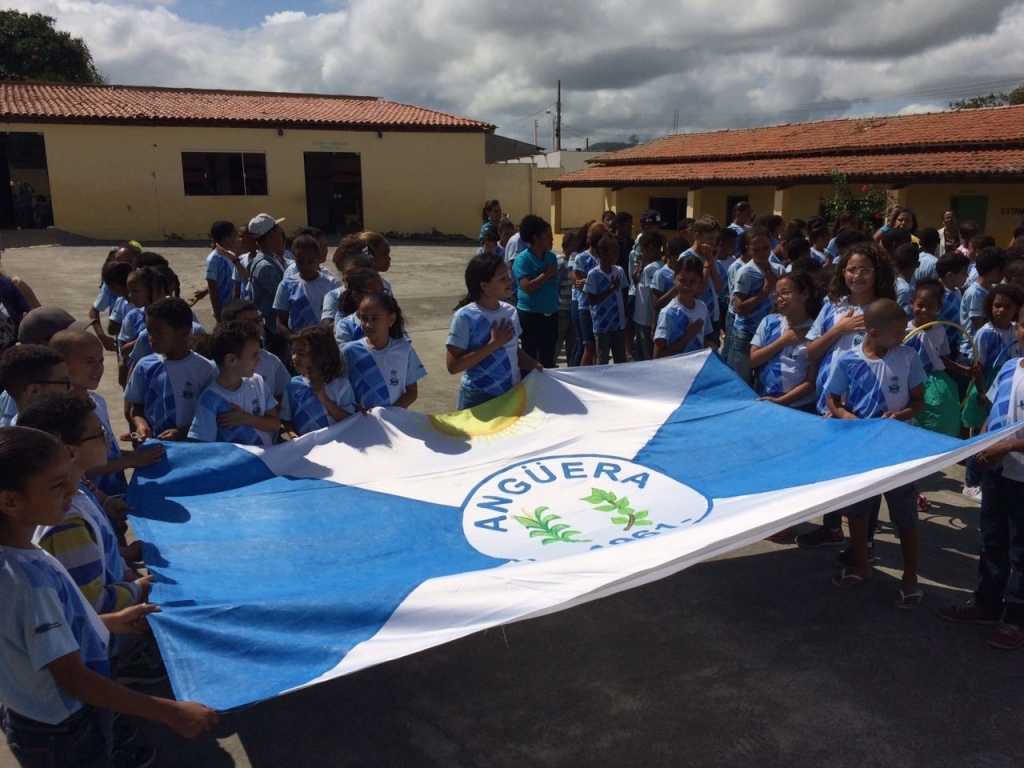 bandeiras Nacional, Estadual e Municipal conduzida por alunos e entoado o Hino Nacional.Durante toda a semana